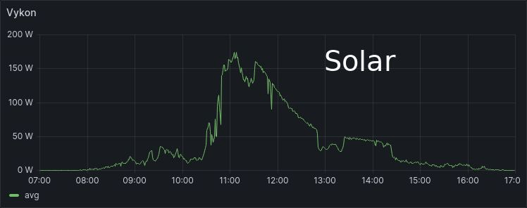 Pro ty, kteří se podivují nad klesající křivkou výkonu u soláru: nabíjím z toho 65Ah baterii a díky tomu, že je nabitá, si už víc nevezme. Ale o tom někdy příště.
