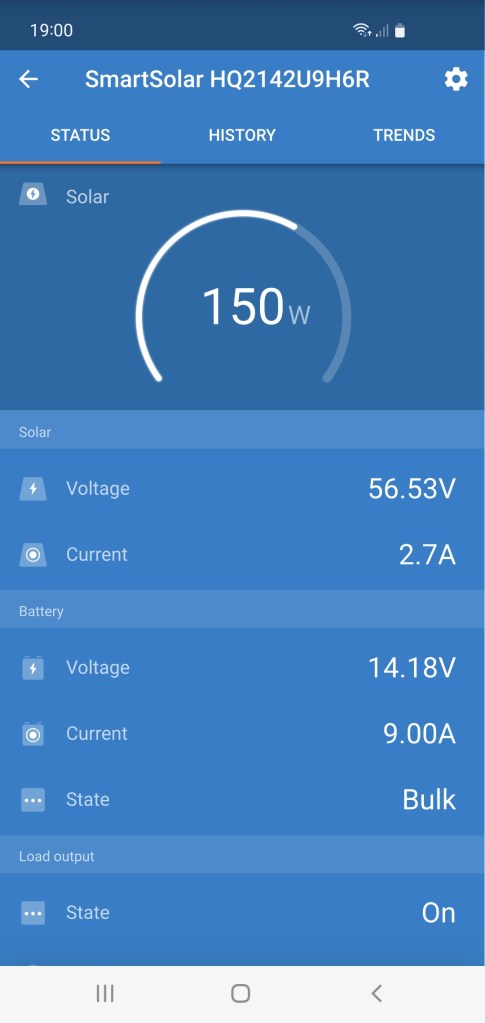 Pro ovládání regulátoru je k dispozici mobilní aplikace, ve které je možné sledovat všechny hodnoty nabíjecího procesu včetně historie a provádět nastavení parametrů. Aplikace se k regulátoru připojuje přes Bluetooth. Regulátor nabízí také rozhraní VE.Direct, což je podle popisu založeno na sériové komunikaci a přímo vybízí k integraci do chytré domácnosti.